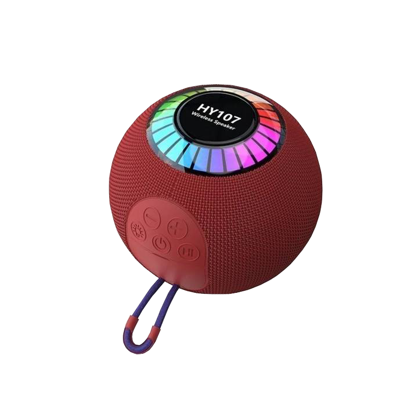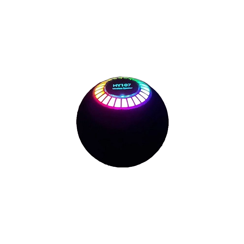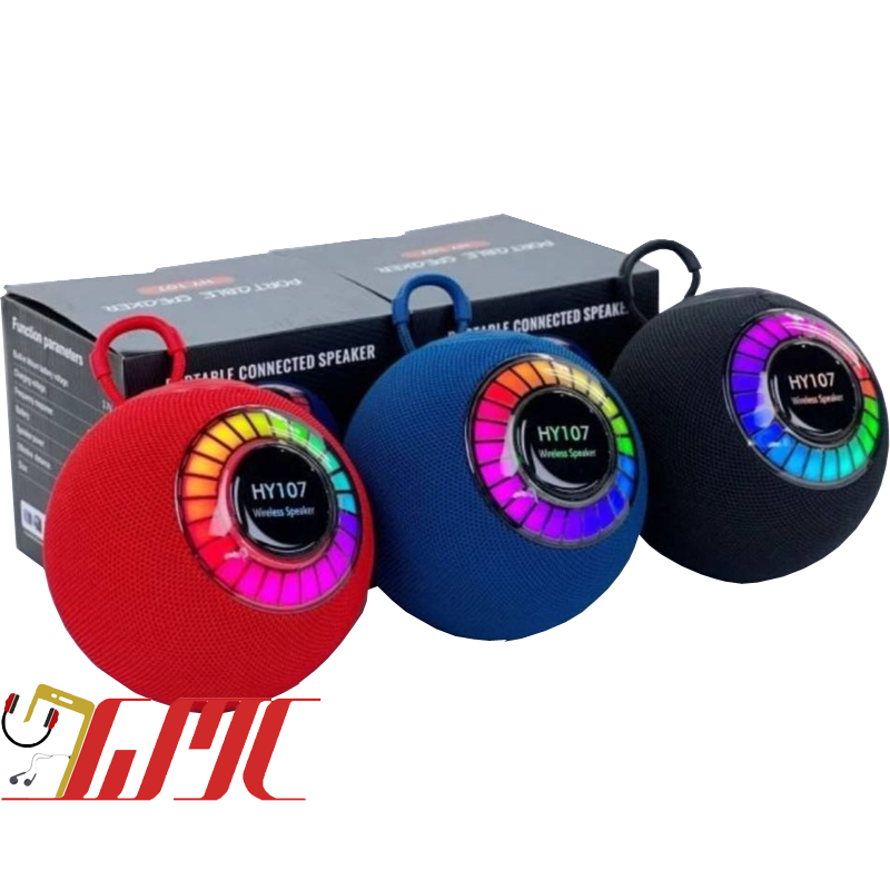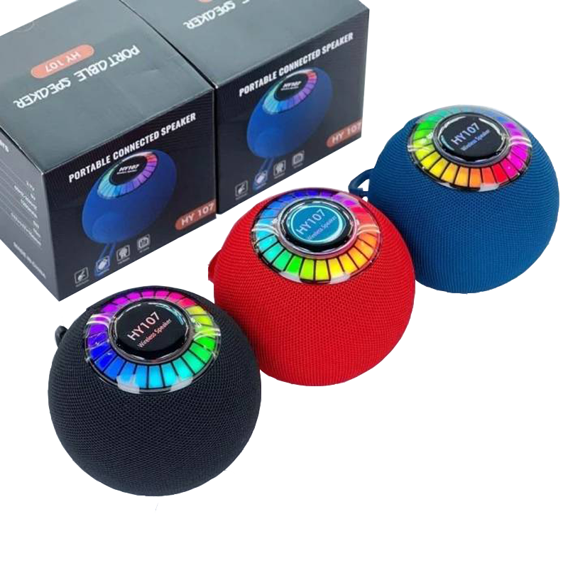 - در اینجا اسپیکر شارژی بلوتوثی rgb برند hy مدل107 با یک طراحی جذاب به شما معرفی میشود.